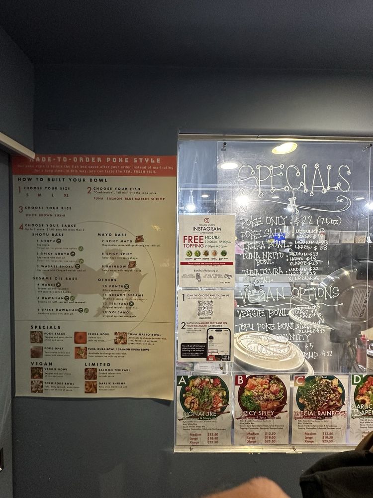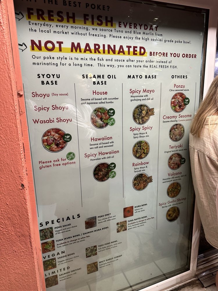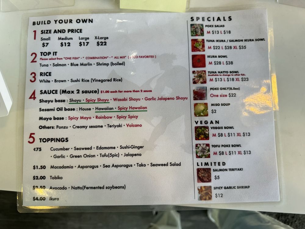 At Maguro Spot in Waikiki, you can create your own original poke bowl with a variety of rice and sauce options. The menu also features specials like Pork Salad, Tuna Natto Bowl, and Salmon Ikura Bowl. Customers rave about the freshness and deliciousness of the poke bowls, with some recommending following them on Instagram for free toppings. The Shave Ice is a popular dessert option with 12 flavors available. The casual atmosphere and friendly staff make dining here a pleasant experience. Prices are reasonable, and the location in the heart of Waikiki is convenient for tourists and locals alike. Overall, Maguro Spot is highly recommended for those seeking a tasty and satisfying poke experience in Hawaii.